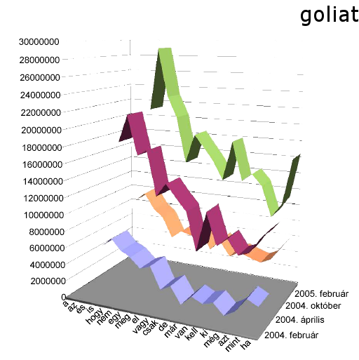 A diagramon jól látszik, hogy a kapott találatok számának profilja változatlan, tehát az adatbázis összetételében és a keresőprogram működésében nem történt gyökeres változás. A találatok folyamatos növekedése mutatja, hogy egyre több és több magyar nyelvű oldal szerepel a Google indexében.